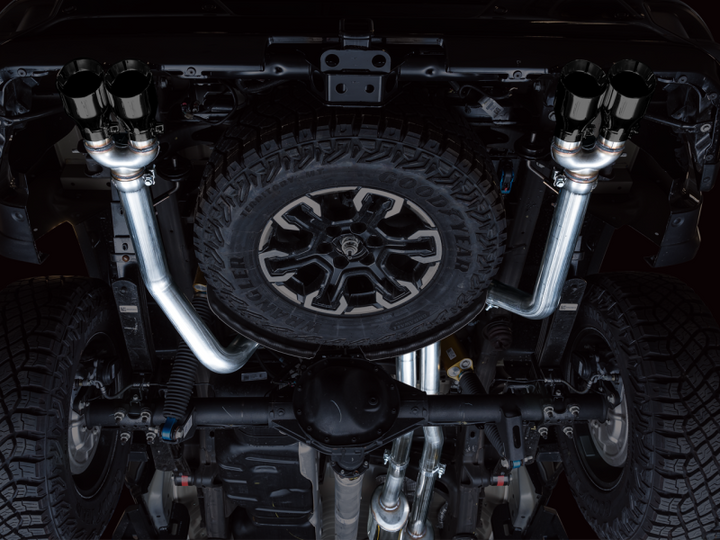 AWE Tuning 22-23 GMC Sierra 1500 AT4X 6.2L 0FG نظام عادم ثنائي منفصل (مصد مسطح) - أطراف ماسية سوداء